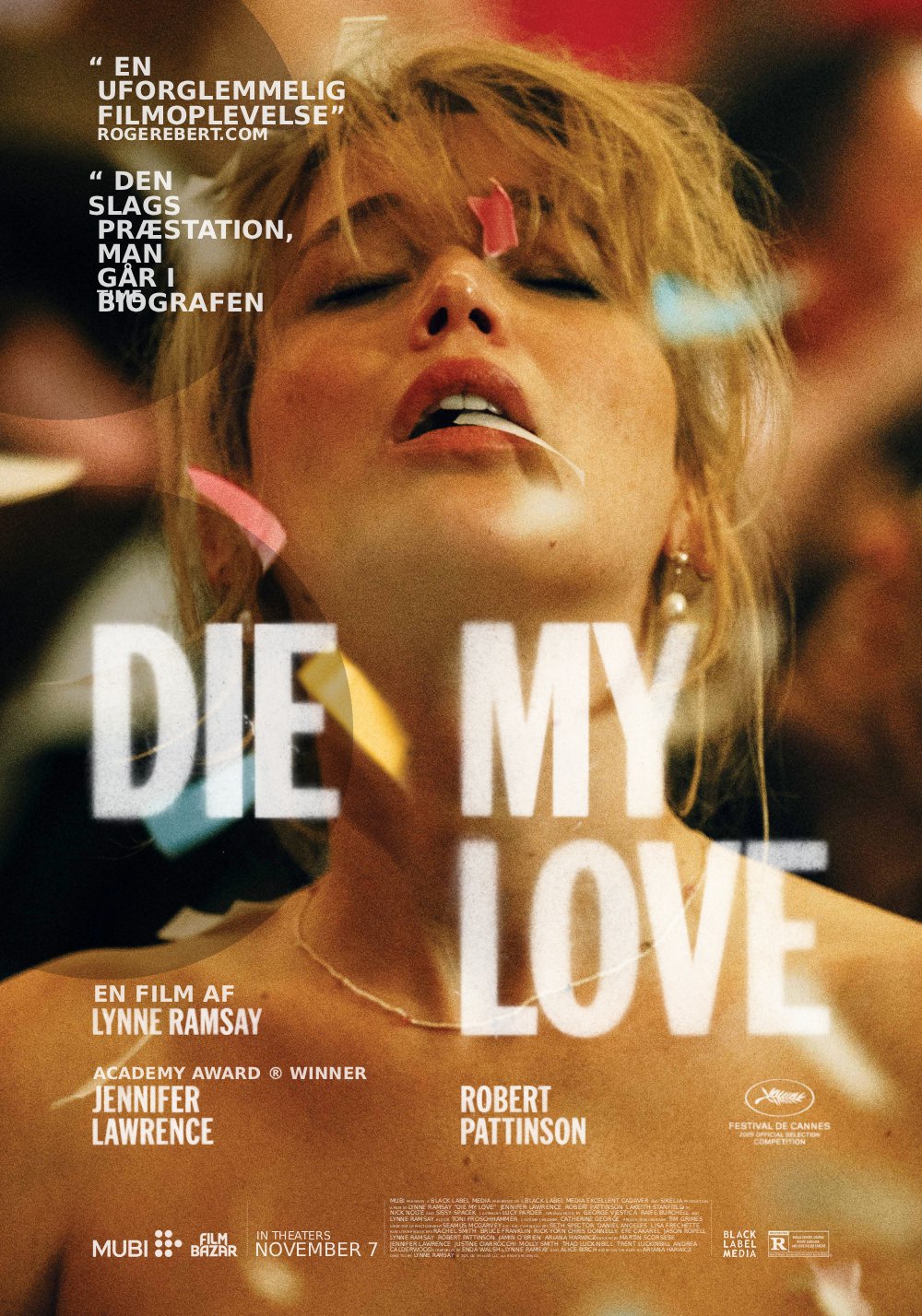 Jennifer Lawrence og Robert Pattinson i Lynne Ramsays stærke og rørende drama om identitet og moderskab. Da Grace og Jackson (Jennifer Lawrence og Robert Pattinson) flytter ind i hans barndomshjem på landet, starter de et nyt kapitel med deres lille barn — men hverdagen, isolation og gamle traumer trækker Grace ind i en dybt personlig kamp for at holde sammen på sig selv og sin familie. Die, My Love, instrueret af Lynne Ramsay og baseret på Ariana Harwicz’ roman, blev udtaget til hovedkonkurrencen i Cannes 2025 og høstede stor opmærksomhed for sine kraftfulde præstationer. Efter den amerikanske premiere skriver anmelderne begejstret om Jennifer Lawrence, som bredt nævnes blandt favoritterne til en femte Oscar-nominering for rollen.